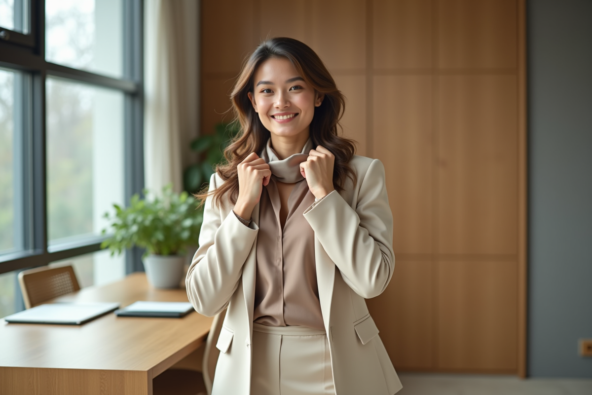 Tout commence par le choix des vêtements. La coupe, la matière et la couleur jouent un rôle décisif. Imaginez un blazer taillé sur mesure, une chemise en coton d’une blancheur irréprochable, une jupe midi fluide ou une robe en soie qui accompagne les mouvements sans les contraindre. Le pantalon ajusté, quant à lui, doit à peine effleurer la cheville. Résultat : une allure affirmée, jamais tape-à-l’œil.