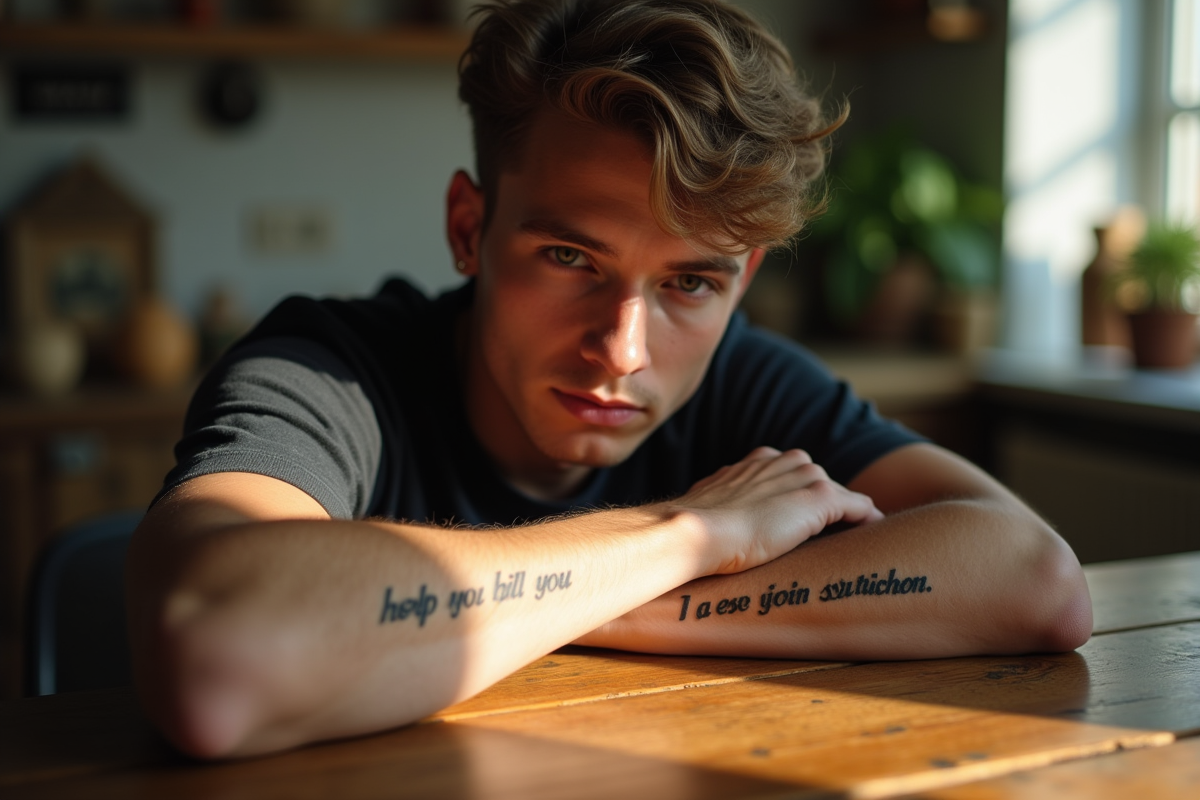 Le paysage du tatouage pour homme a évolué : le règne des motifs tribaux appartient au passé. Désormais, la phrase tatouage s’impose, capte l’air du temps ou cristallise une émotion forte. Les tatoueurs deviennent accompagnateurs, proposent, ajustent la typographie au style souhaité, de la police manuscrite à la lettrine gothique. La phrase tatouée, c’est plus qu’un dessin, c’est un manifeste, parfois même une prise de position.